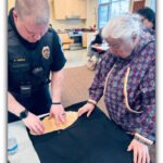 Elder Marie Yaska shares her skills and traditions as she guides Fairbanks Police Chief Ron Dupee in crafting a beaver-fur…
