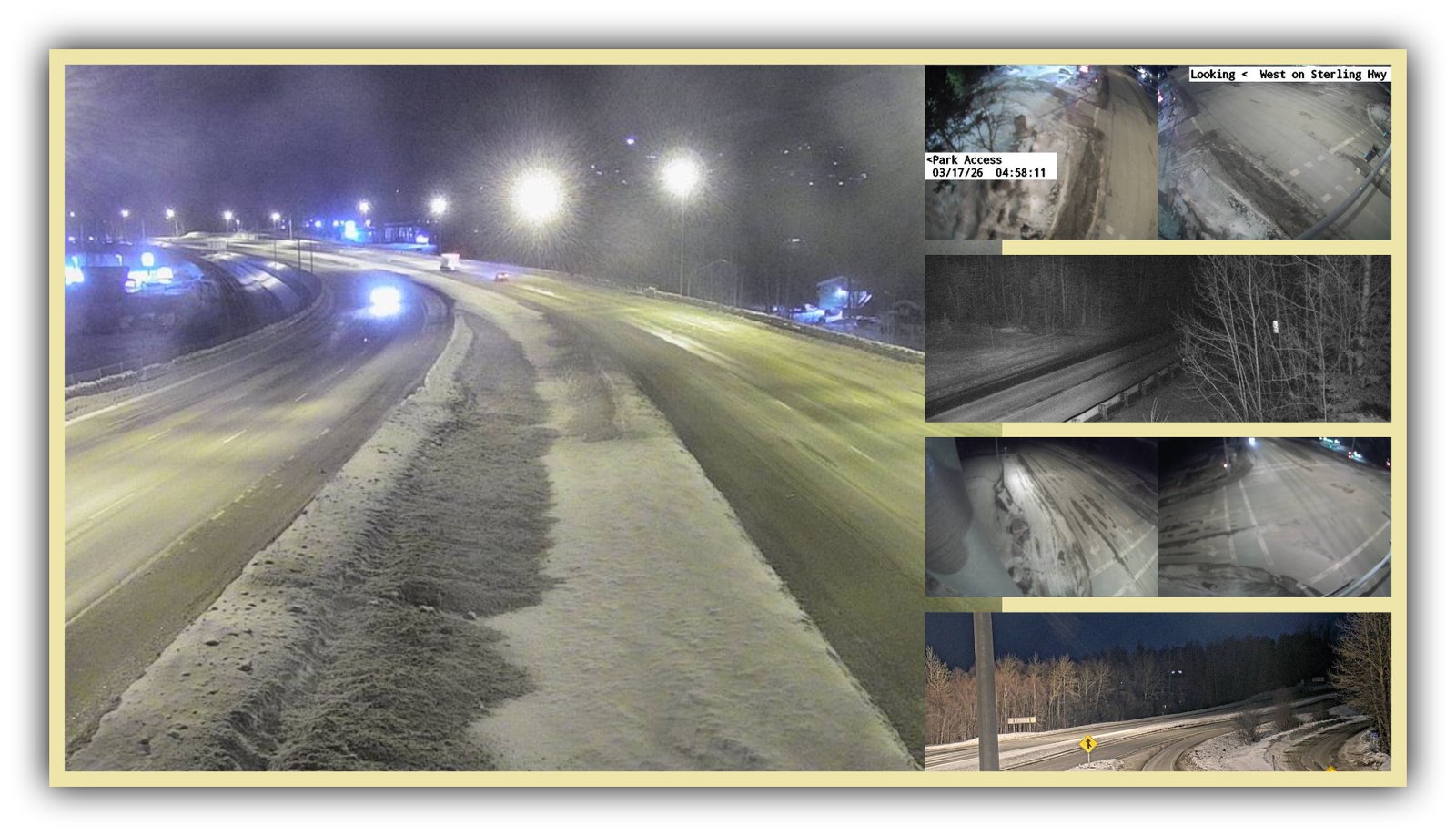 Parks Highway near Talkeetna Spur Road at Milepost 98.7, shown in an Alaska 511 traffic camera image. State transportation officials…