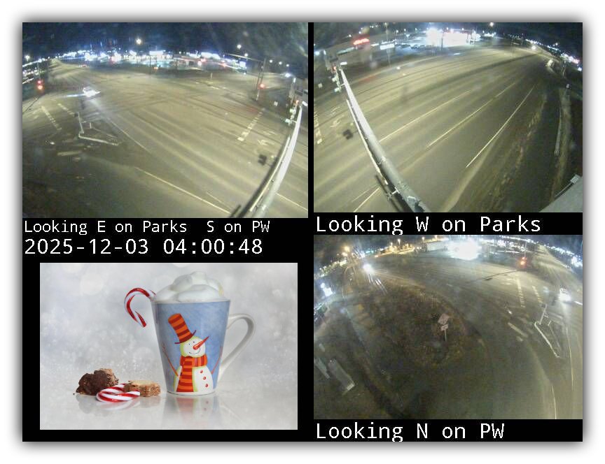 Early MorningCloudy, 24 to 28 degreesFrost and black ice on bridges and shaded areasWarm up the car and roll out like the road is trying to fool you.