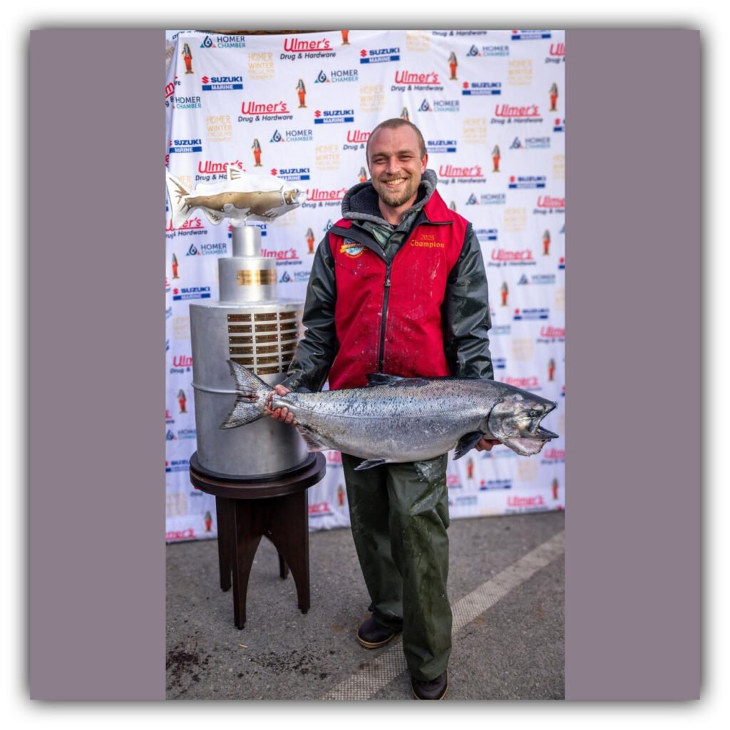 Last year’s Winter King champion Zach Weimann with the winning catch from the Homer Winter King Salmon Tournament. Anglers return to Kachemak Bay on March 28 chasing the next prize-winning king. Read on to see how to register. Photo: Homer Winter King Salmon Tournament