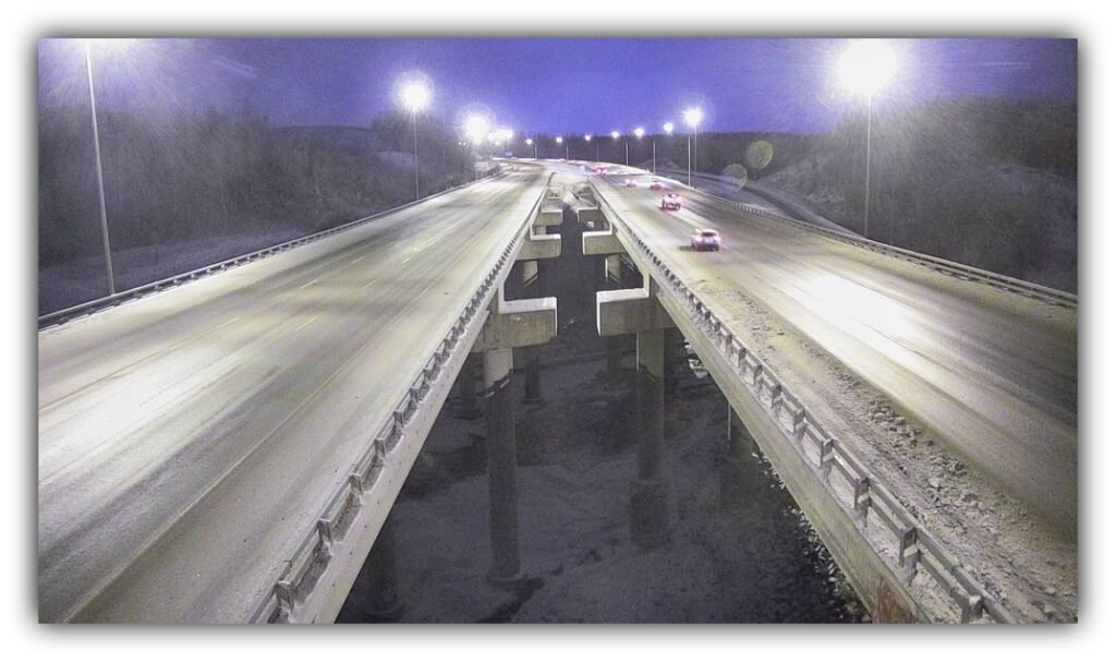 Between Wasilla and Palmer, the road is mostly wet. In low spots or shaded stretches, a thin glaze may form. The pavement can look like it’s sparkling for the holidays, but don’t let it trick you.