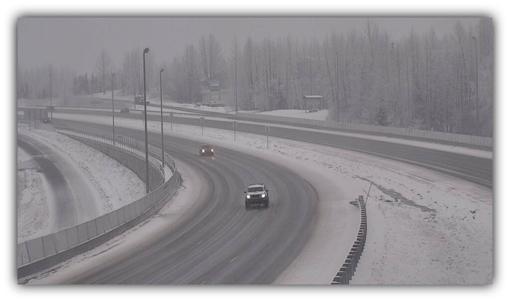 Because out there today, it’s still snowing, visibility is low, and Southcentral roads are staying in full winter mode.