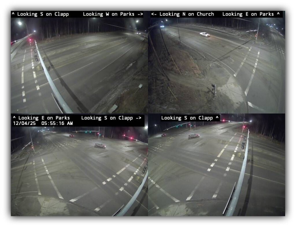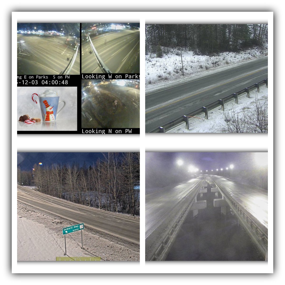 Dense fog and a lingering wintry mix are reducing visibility inbound toward Anchorage. Outbound toward the Valley is seeing a thin glaze in places, especially overpasses and shady stretches. Keep extra distance between you and the car ahead because braking distances grow when surfaces glom onto that freezing mix.