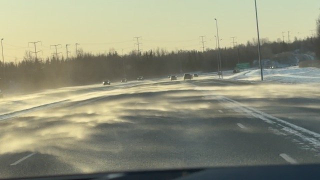 Strong north winds continue through the morning across Southcentral including Anchorage, Eagle River, the Mat-Su Valley and sections of the Glenn Highway corridor with gusts that have reached 60 to 70 mph in some spots. These winds can blow loose snow back onto roadways and make steering tougher on open sections. Wind chills may feel well below zero, especially in exposed spots.