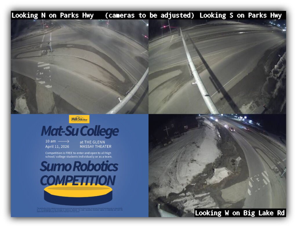 Parks Hwy & Big Lake Rd | Alaska 511 | Students will put their engineering skills to the test at the Mat-Su College Sumo Robotics Competition on Saturday, April 11, 2026, at 10:00 a.m. inside the Glenn Massay Theater at Mat-Su College, 8295 E. College Drive in Palmer. Hosted by the Mat-Su College Robotics Club, the free event invites high school and college students to compete individually or in teams using fully autonomous robots built to international Sumo Robotics rules. In each three-minute round, robots attempt to push their opponent out of the sumo ring without human control. Winners will receive a three-credit tuition waiver to Mat-Su College. More information is available by calling (907) 745-9732.