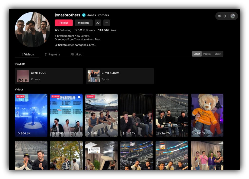 Inside the Jonas Brothers’ TikTok: See how the band connects with fans, shares behind-the-scenes moments, and tests TikTok’s new Bulletin Board feature.
