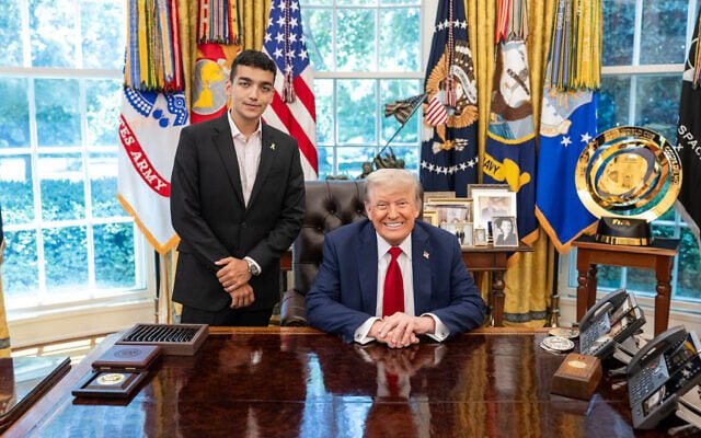 President Trump meets Edan Alexander, the Israeli-American held hostage by Hamas for 584 days, at the White House today, marking the second anniversary of the October 7 attacks.