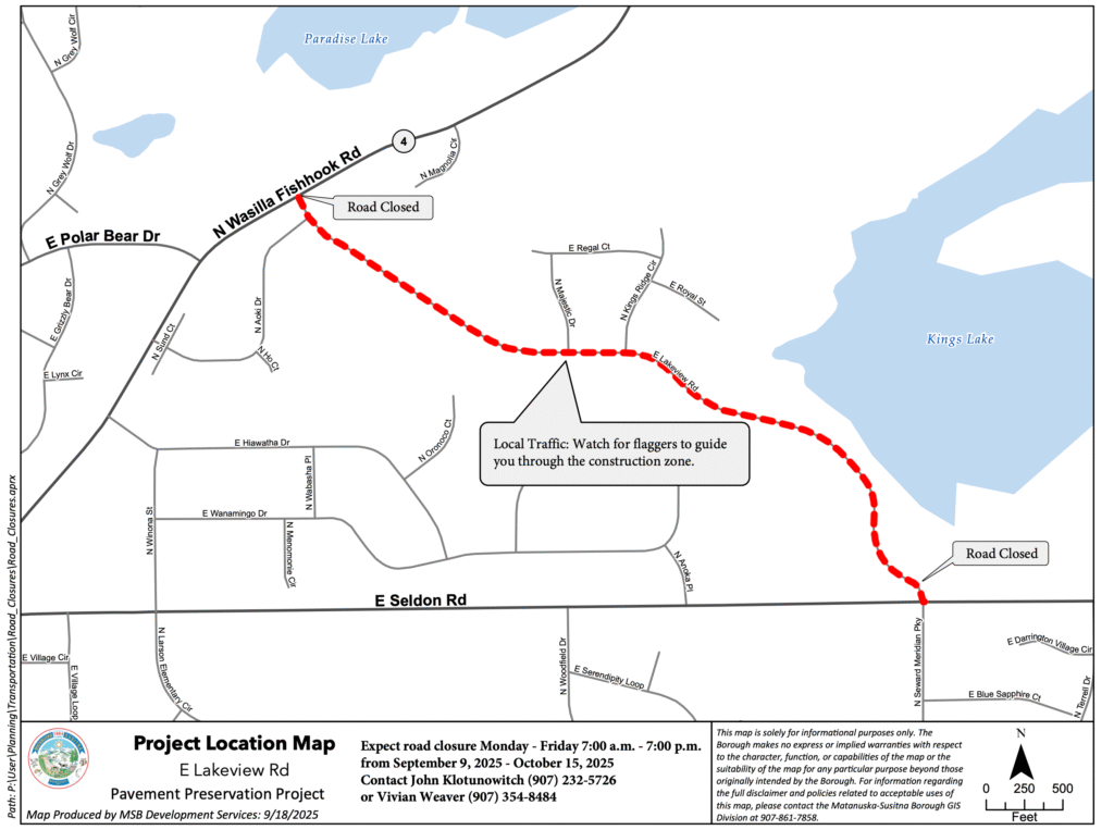 - Traffic: Local drivers should use caution and follow directions from flaggers at the site.