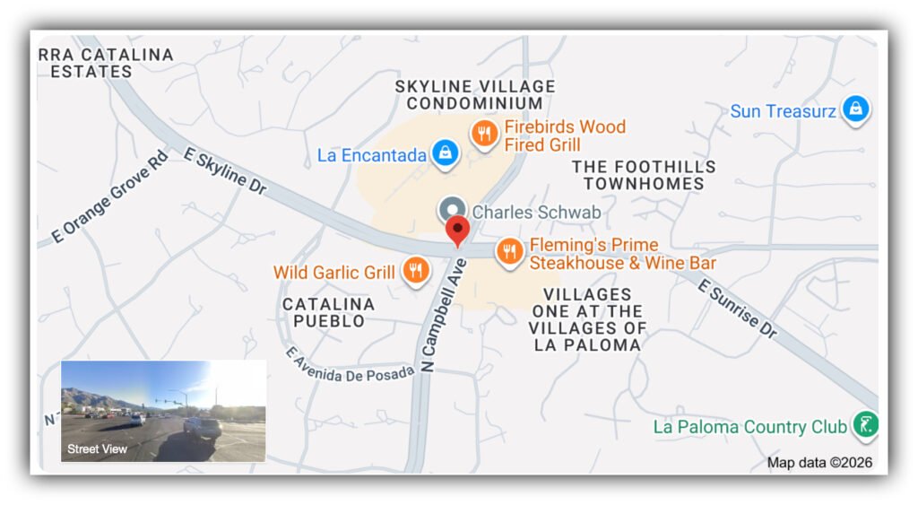 The neighborhood near East Skyline Drive and North Campbell Avenue in Catalina Foothills, Arizona, where Nancy Guthrie was last seen. Photo: Google Maps.