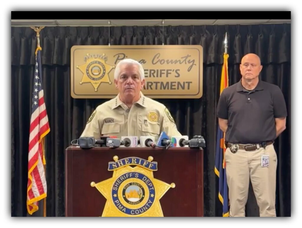Pima County Sheriff Chris Nanos addresses the media during a live press briefing on the ongoing search and investigation into the disappearance of Nancy Guthrie. Photo: Pima County Sheriff’s Department, February 2, 2026. See the full press conference here: Facebook.