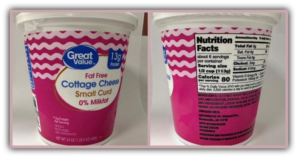 | Great Value Fat Free Small Curd Cottage Cheese – 0% Milkfat | 24 oz. container | 078742373393 | BEST IF USED BY APR-01-26 BEST IF USED BY APR-03-26 |