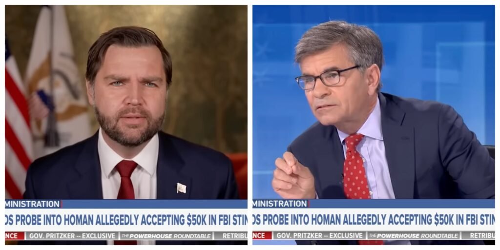 WASHINGTON – During an October 12 appearance on This Week, host George Stephanopoulos sharply pressed Vice President J.D. Vance over allegations that Tom Homan, the White House’s “border czar,” accepted a $50,000 cash payment from undercover FBI agents, and abruptly cut the interview short when Vance declined to provide a direct answer.
