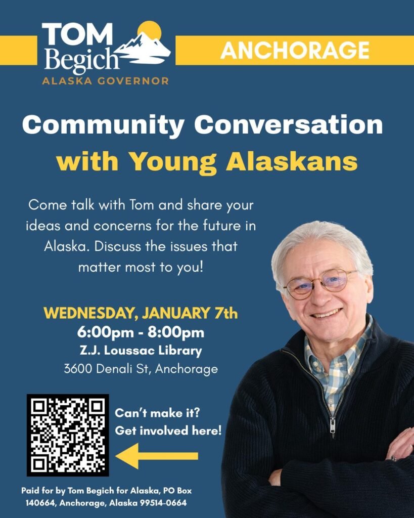 Beyond weather and travel, Anchorage residents have opportunities to connect and unwind. Tom Begich is hosting a Community Conversation at the Z.J. Loussac Library tonight at 6 PM, inviting residents to share concerns, ask questions, and engage in open discussion.