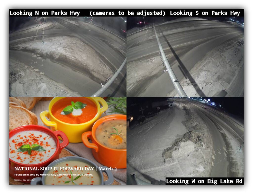 | Afternoon | 6 | -4 | Slight warming near Anchorage Bowl. South of Girdwood remains slick. | Moderate |