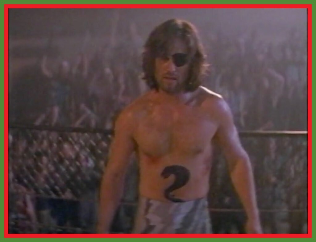 Snake Plissken enters the arena looking less like a savior and more like the world’s grumpiest mall Santa, ready to deliver anything but holiday cheer to dystopian New York.