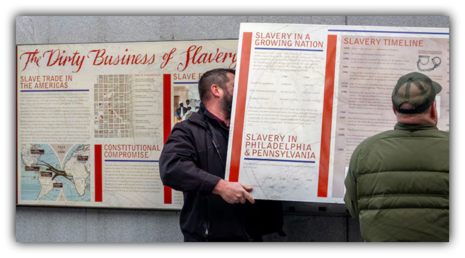 The panels told the stories of nine individuals enslaved in the President’s House during the 1790s, including biographical details and context about slavery’s role in the early republic. According to the City’s complaint, those interpretive materials were created through years of research and collaboration and had been on display for over a decade.