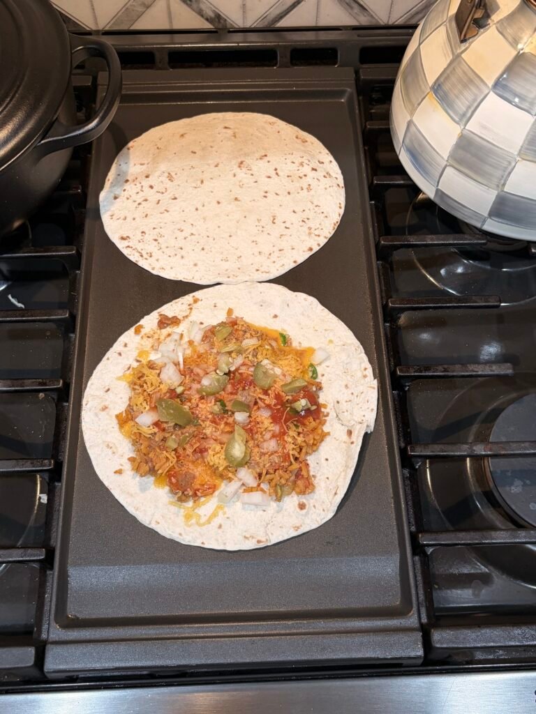 “Fiesta Flip Quesadilla” Because your leftovers just got a party upgrade! 🎉