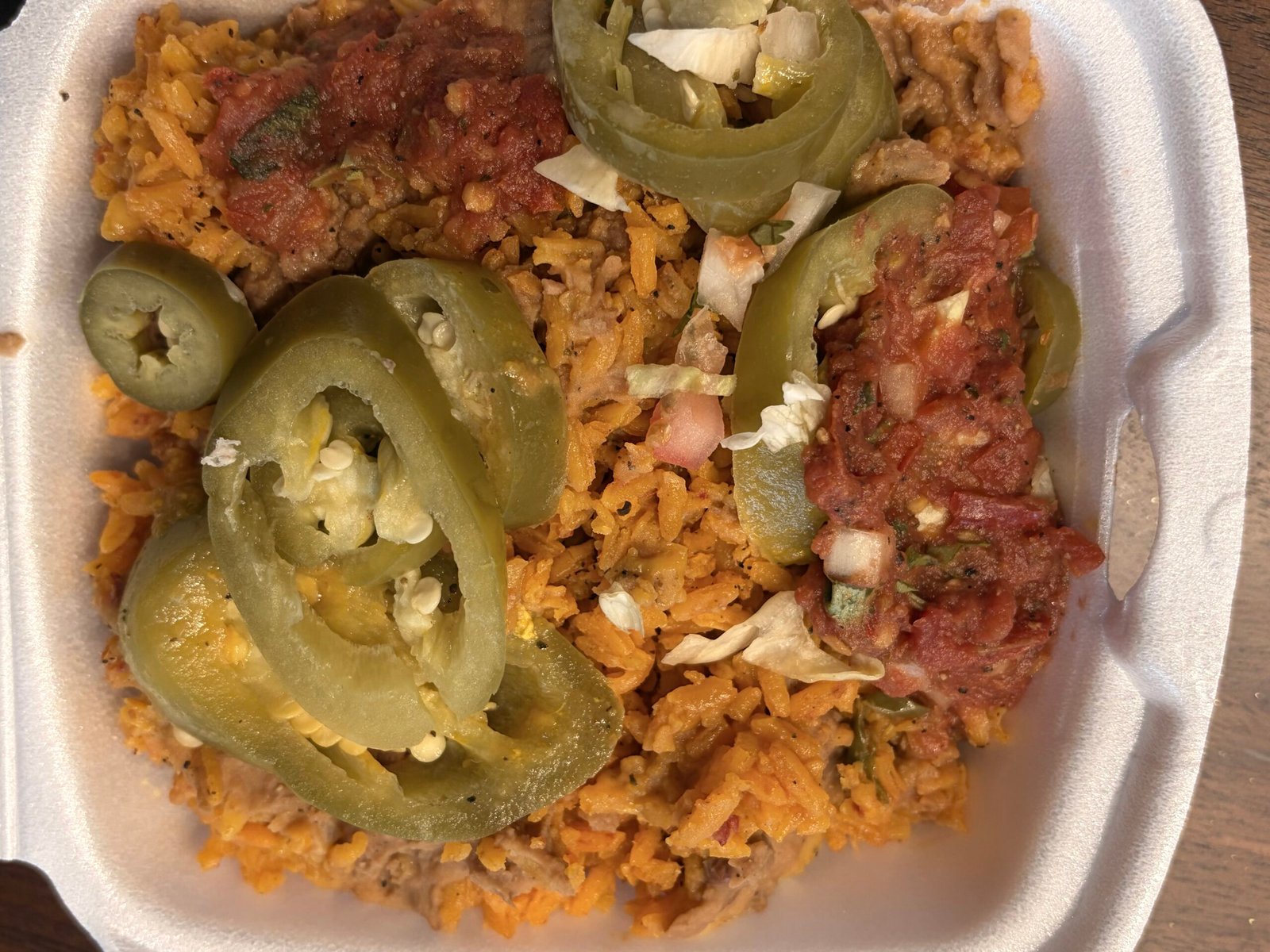 • 1–2 cups leftover Mexican restaurant rice and beans