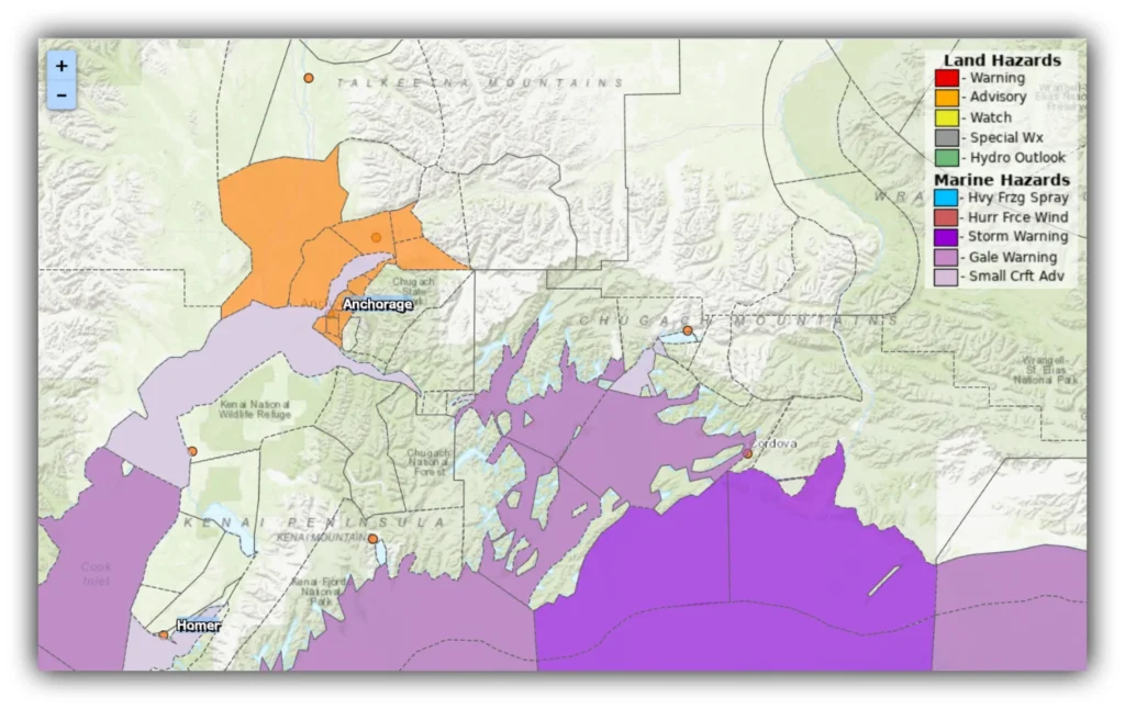 A National Weather Service Winter Weather Advisory is in effect for Anchorage, the Lower Matanuska Valley, and Susitna Valley through Monday morning. Residents should expect a wintry mix of snow, freezing rain, and rain. Forecasts call for up to 3 inches of snow and a light glaze of ice, creating dangerous travel conditions, especially on bridges, overpasses, and untreated roads. Drivers are urged to slow down, allow extra stopping distance, and avoid unnecessary travel.