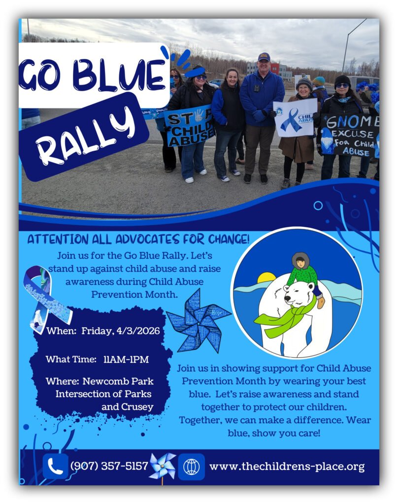 WASILLA, Alaska – Neighbors, families, and community members are invited to come together this Friday, April 3, for the Go Blue Rally, a special event focused on raising awareness for child abuse prevention. Hosted by The Children’s Place, the rally will run from 11:00 a.m. to 1:30 p.m. at Newcomb Park, located at the corner of Parks Highway and Crusey Street in Wasilla.