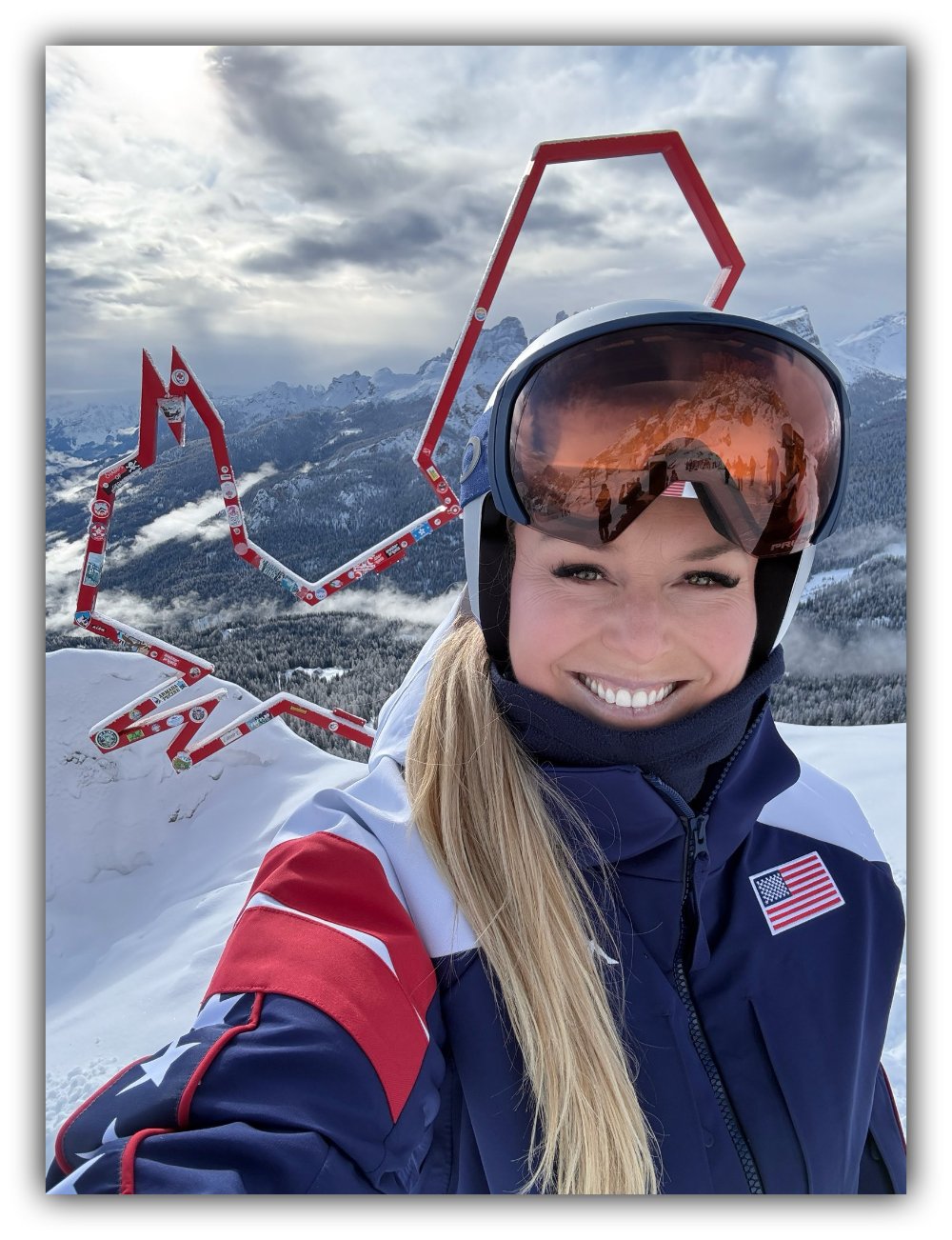 Lindsey Vonn beams in a selfie taken during her first downhill training run at the Olympia delle Tofane course in Cortina d’Ampezzo, Italy, on Feb. 6, 2026. Posted to her X account (@lindseyvonn), the image shows the 41-year-old U.S. skiing legend radiating excitement just two days before her ill-fated Olympic downhill race.
