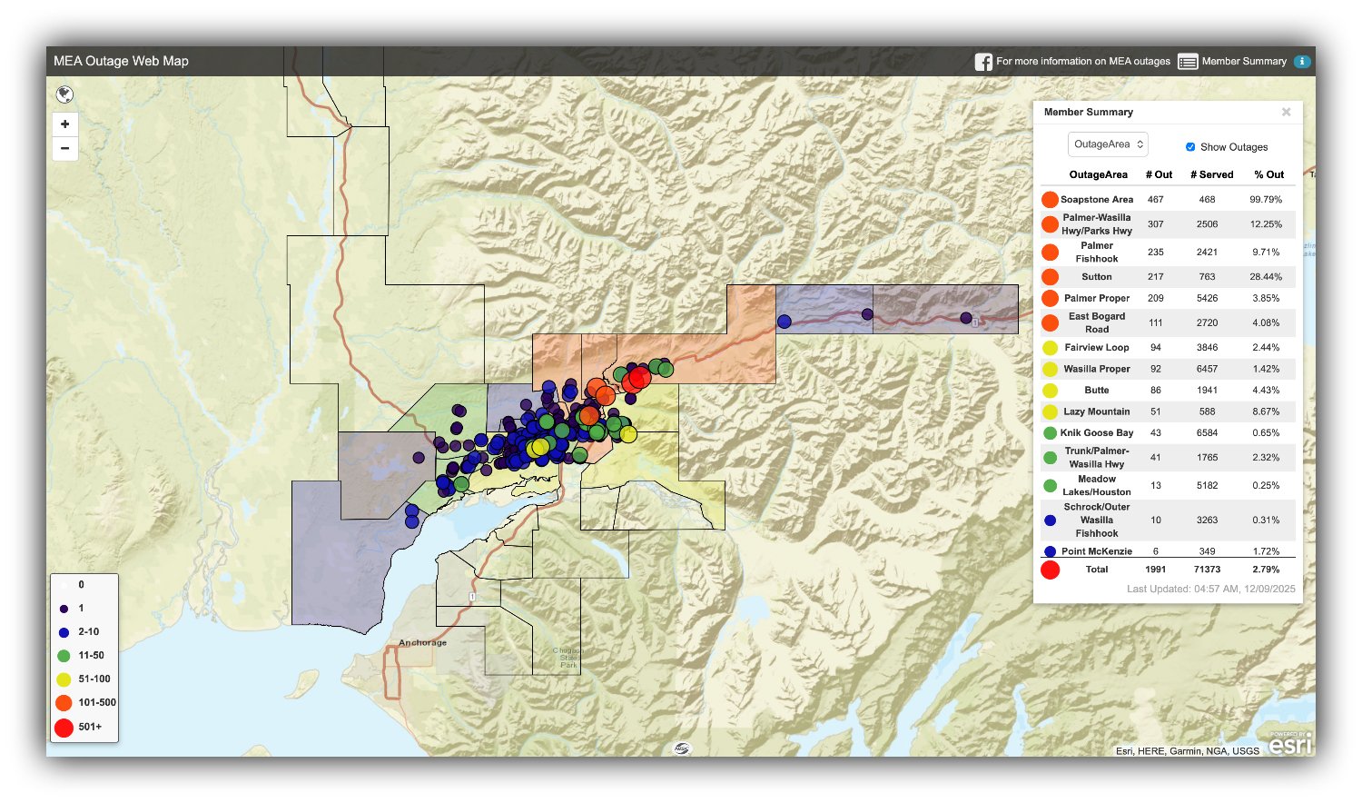 The Matanuska-Susitna Borough continues to coordinate emergency services, including shelters for residents without heat or electricity. Officials encourage everyone to stay informed through the MEA outage map, local government alerts, and NWS updates until full restoration is complete.