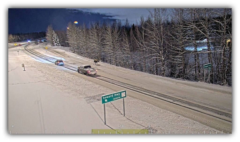 🫎 Caught on camera: A moose is spotted taking the Seward Highway on-ramp the wrong way. Stay alert, folks, you never know who’s sharing the road! ⬇️
