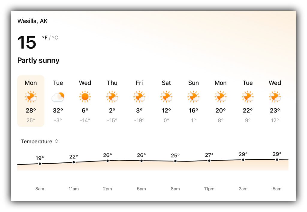 💅 Good morning, sweetie. Today we’re lookin’ at true winter chill out there with temperatures well below freezing and mostly cloudy skies in the Mat-Su. Drivers should plan for slick spots and snow-packed shoulders. The snow plow crews have been working hard, but it’s still winter out there. Keep extra distance and slow down if you’re heading anywhere, especially this morning and late tonight. The overnight sky may send a few snowflakes our way heading into early Tuesday, but most forecasts are keeping it light for the Wasilla and Mat-Su area, with less than an inch of new snow expected before morning.💖