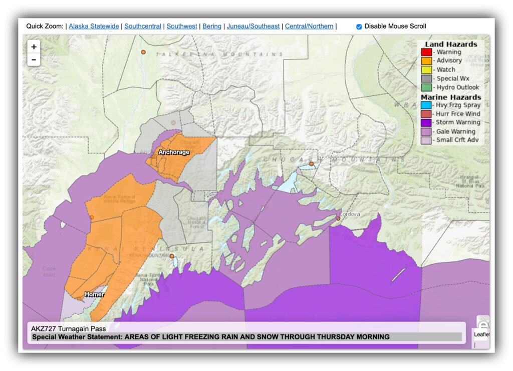 | Morning | 30 | 27 | Rain over ice possible near Turnagain Arm | High |