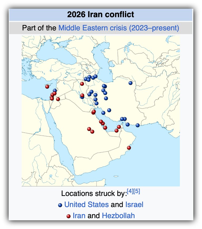 • Iranian Red Crescent authorities report roughly 555 deaths inside Iran from air and missile strikes across more than 130 cities.