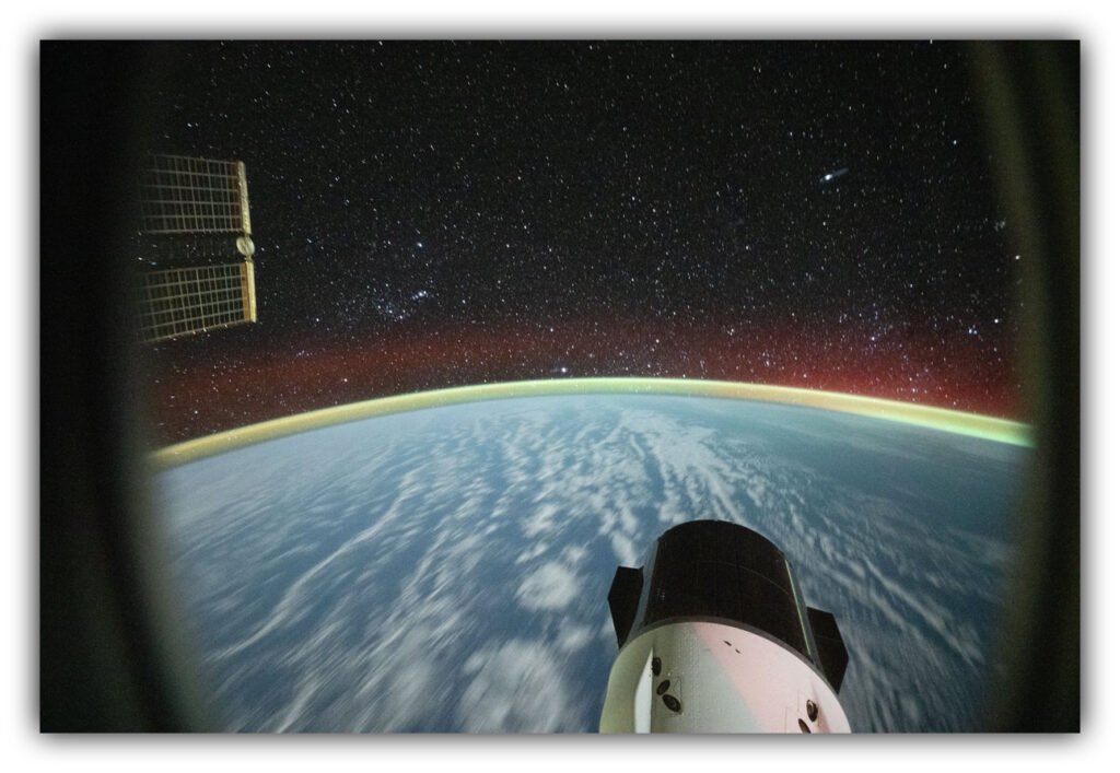 The International Space Station kicked off today’s social media buzz with a reminder that life in orbit never slows down. From 263 miles above the Indian Ocean, astronauts captured a stunning long exposure image showing Earth glowing with airglow, clouds smeared into soft motion, and stars tracing gentle arcs across the sky. Even better, the SpaceX Dragon cargo spacecraft photobombed the shot from the lower foreground.