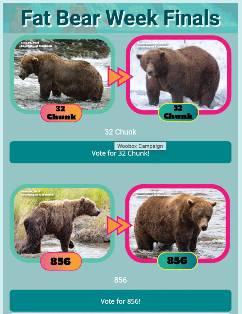 So wear your bear T-shirt, grab a snack (preferably salmon-themed), and head to fatbearweek.org. Vote. Refresh. Meme. Repeat until the clock strikes 9 p.m. ET. Then sit back and watch as the “beefiest bruin” of 2025 is revealed.
