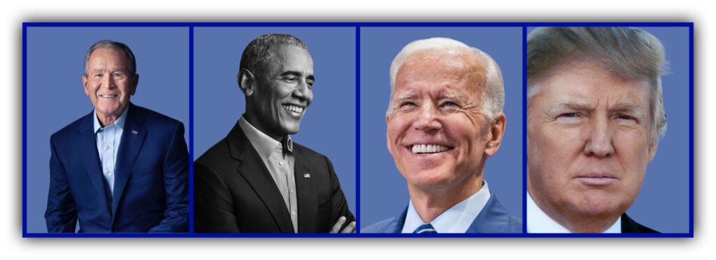 The collage of past and current presidents makes an important point visually: gas prices rise and fall under every administration. From George W. Bush to Barack Obama to Joe Biden and Donald Trump, each presidency has experienced both high and low fuel prices. That pattern reflects a global system that continues regardless of who is in office.